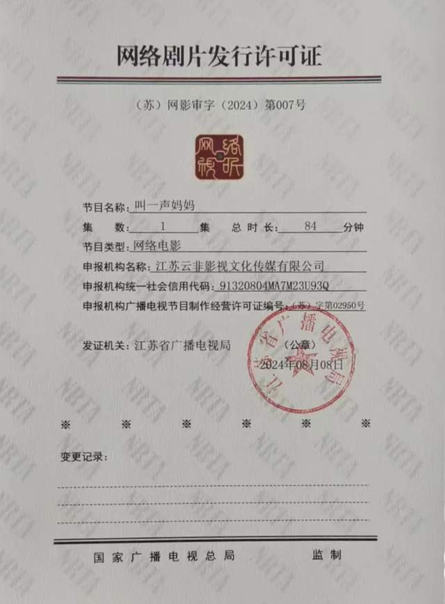淮安又拍电影了!公益电影《叫一声妈妈》通过审查 获准发行许可发表时间:2024-08-14 20:58来源:淮安文化旅游网 日前,记者从有关部门获悉,公益电影《叫一声妈妈》于2024年8月8日通过江苏省广播电视局审查委员会审查,并获得国家广电总局批复,取得发行许可证。