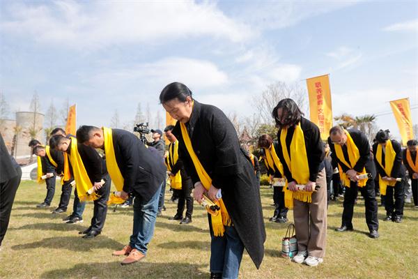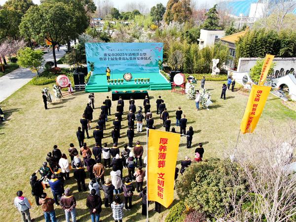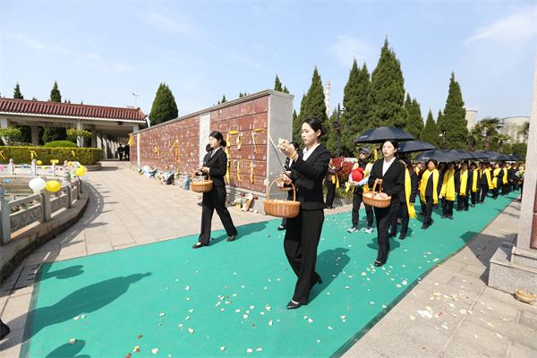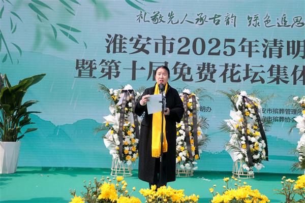 淮安市2025年清明节公祭暨第十届免费花坛集体安葬仪式发表时间:2025-04-03 19:01来源:淮安文化旅游网 春风拂柳,又至清明。4月3日,伴着庄重的音乐,淮安市2025年清明节公祭暨第十届免费花坛集体安葬仪式活动在市永思园举行。 ![]() 本次活动以“礼敬先人承古韵 绿色追思倡新风”为主题,由淮安市民政局与淮安日报社共同主办。在这庄严肃穆的日子里,大家齐聚永思园,宣读倡议书、敬献花篮、诵读祭文、鞠躬献礼,追忆先辈功绩,传承家国情怀。 ![]() ▲诵读祭文 公祭现场,松柏苍翠,庄重肃穆。活动现场,“讲文明 树新风 文明祭奠”“厚养薄葬 文明祭祀”等宣传绿色殡葬、文明祭扫的标语处处可见,前来祭扫的市民络绎不绝。 ![]() ▲市民政局党组书记致辞 上午9点30分,公祭仪式正式开始。敬献花篮、整理缎带、鞠躬献礼、诵读祭文、敲响祭奠钟声、宣读倡议书……一项项流程有条不紊,庄重进行,无声地诉说着人们的哀思。所有参加公祭的人员身披黄丝带,着装整齐,神情肃穆,站立静默。全体肃立,整理衣冠,向长眠于此的先人们行鞠躬礼。一鞠躬,饮水思源,不忘先人恩泽。再鞠躬,慎终追远,传承优良家风。三鞠躬,继往开来,共创美好未来。公祭人员齐诵祭文,余音袅袅,不绝于耳,回荡在市永思园的上空,寄托着人们无限的哀思。字字含情,句句铭心。愿祭文承载的追思跨越时空,告慰故人。随后,工作人员为逝者敲响思念的钟声,一声钟响,愿山河无恙;二声钟响,愿家国永安;三声钟响,愿文明永续。所有人在钟声中默默缅怀逝去的亲人。 ![]() ▲中国好人 金驹宣读倡议书 “让我们携手并肩,从自身做起,从点滴做起,以文明缅怀、关爱他人的实际行动,成为告别陋习的先行者、文明祭扫的带头人,共度一个健康、安全、文明、低碳的清明节。”市民代表、中国好人、江苏省优秀志愿者、江苏省十佳巾帼志愿者、淮安市道德模范金驹宣读了《文明祭扫倡议书》,向社会各界发出倡议,引导广大市民以文明方式寄托哀思。 ![]() ▲献鞠躬礼 ![]() ▲集体花坛葬生态安葬仪式 ![]() ▲花坛葬现场 公祭仪式结束后,伴随着花坛葬入场音乐响起,第十届免费花坛葬集体安葬仪式正式开始。逝者家属将骨灰盒埋入花坛,以三鞠躬表达深深的感恩与思念,随后家属纷纷向逝者敬献鲜花,永远铭记逝者的音容笑貌,铭记他们留下的珍贵回忆。 ![]() ▲敬献花篮 ![]() ▲鲜花寄哀思 ![]() ▲家属跪献哀思 举办集体公祭和花坛葬仪式,既是对传统祭扫文化的创新传承,也是践行文明祭祀的具体行动。我市高度重视殡葬事业发展,把“逝有所安”作为民生大事。自2012年我市举行首届清明节公祭仪式以来,我市持续加大移风易俗宣传力度,着力深化殡葬改革,提升殡葬服务质量,注重文明祭扫宣传和生态殡葬文化挖掘,活动参与人数日益增多,“文明祭祀、厚养薄葬”殡葬理念深入人心。 融媒体记者:李蓉 王昊 高尚杰 通讯员:朱怀宝 骆无穷 编辑:杨信